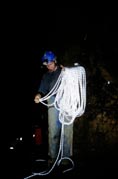 das ursprüngliche Einstiegsloch in der Decke fällt etwas Licht in die Höhle.